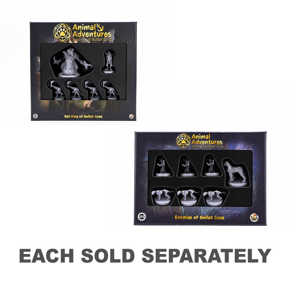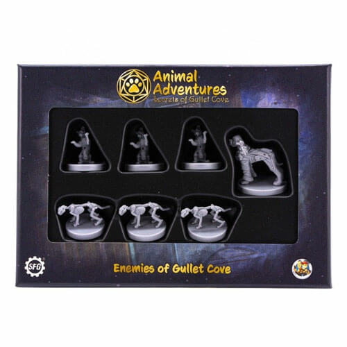 Inside this box you’ll find six fully assembled, highly detailed miniatures ready to paint or play. With these terrifying villains, you can explore the criminal underworld of Animal Adventures with the Secrets of Gullet Cove sourcebook, or use them as enemies in any fantasy campaign. The only limit is your imagination!