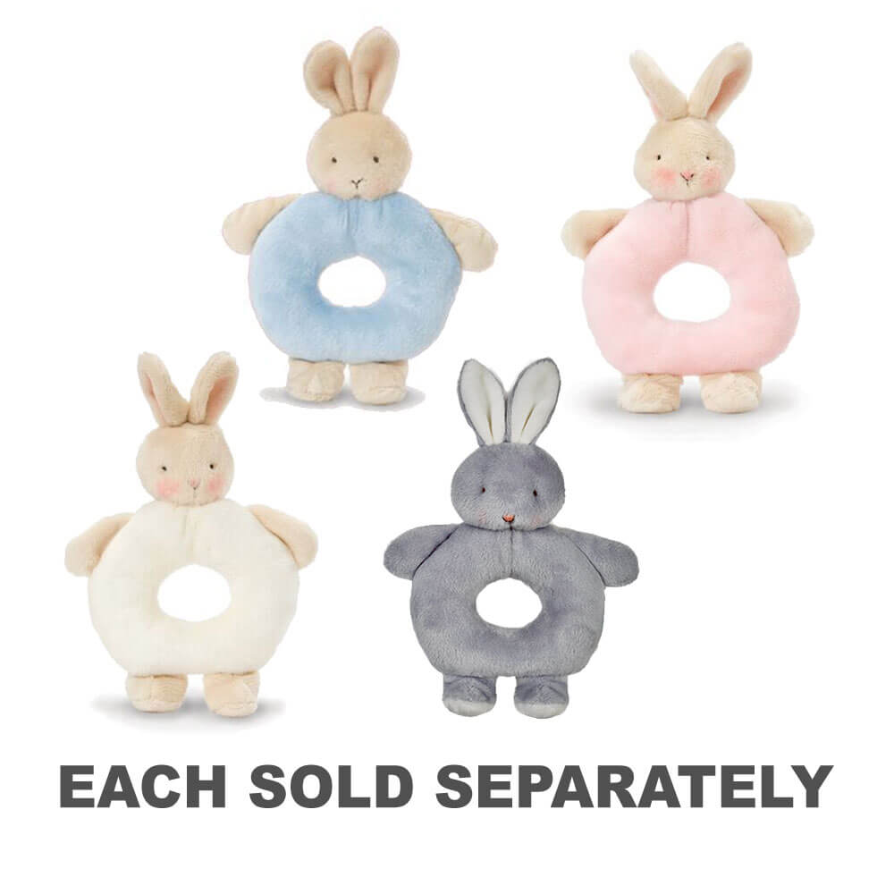 - Bedårende i pastelrosa, blå og hvid er søde små kanin rangler, som babyen vil ryste af glæde!