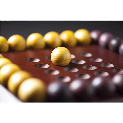 Hver spiller får femten kugler, enten lys eller mørk, og de skifter om at placere dem på et spilbræt, der har seksten indrykkning på et 4x4 gitter. Når fire bolde er placeret ved siden af hinanden på en firkant, kan en bold placeres oven på dem. Dette fortsætter, indtil det fjerde niveau af pyramiden er nået, og den sidste bold placeres.