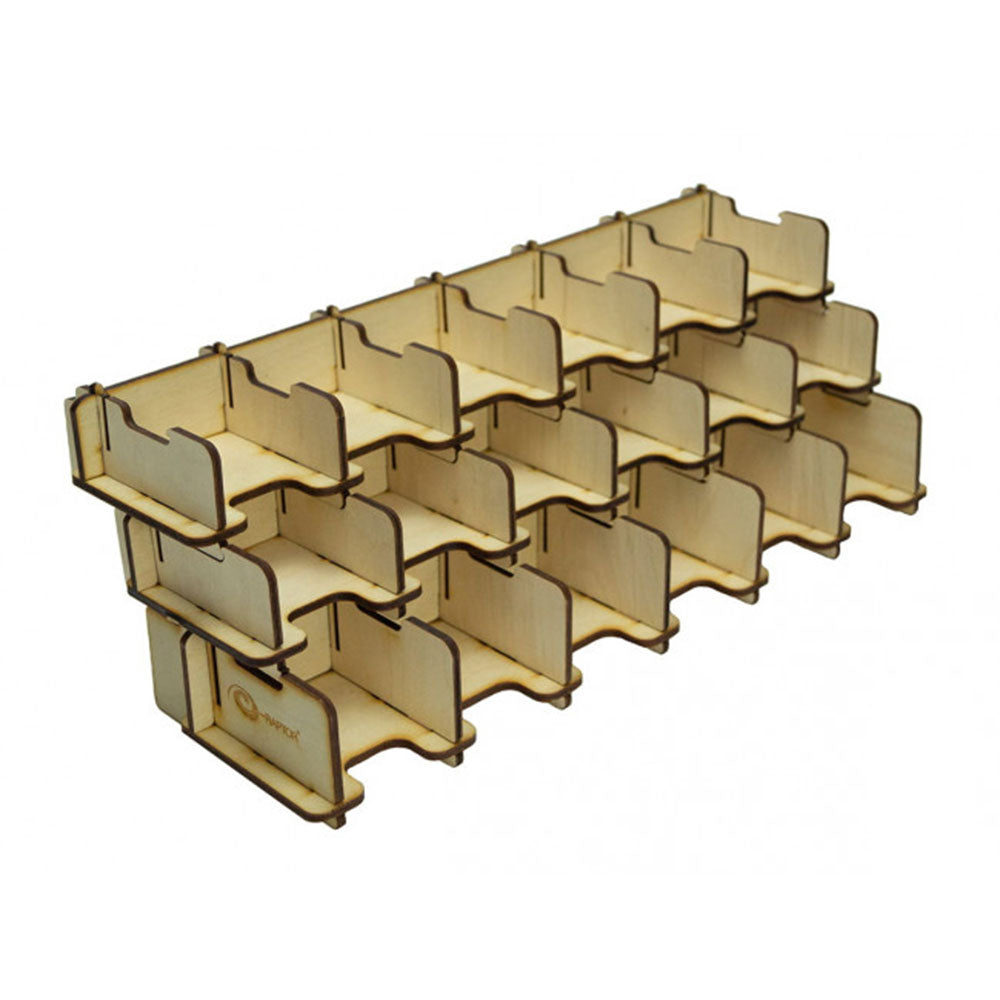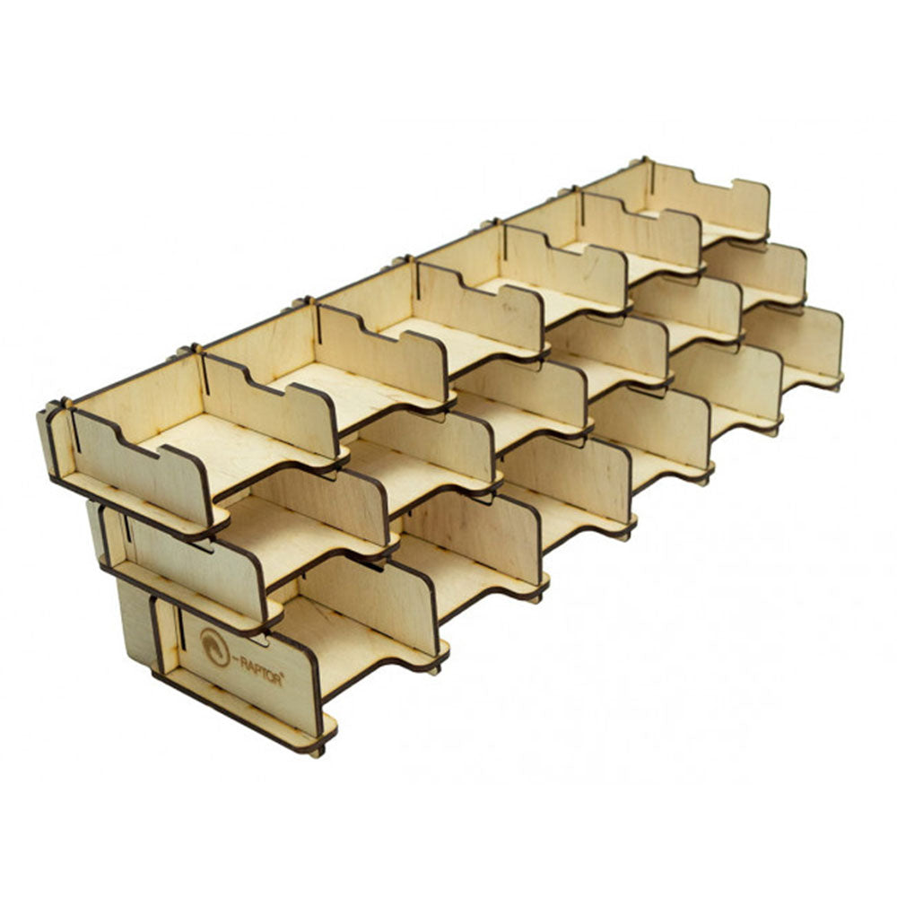 Holzalternative zu unserem Plexiglas-Kartenhalter e-Raptor-Kartenhalter – 2L Solid. Einfach vor dem Spiel zusammenzubauen und danach wieder zu zerlegen. Passend für ca. 200 Karten.
