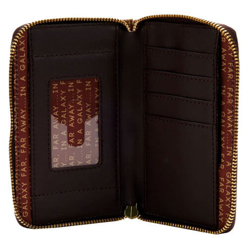 - Die Loungefly Star Wars Lands Jakku Zip Around Wallet ist aus veganem Leder (Polyurethan) gefertigt. Die Geldbörse wird mit robusten Metallbeschlägen verschlossen und verfügt über aufgedruckte Details. Beachten Sie das passende Innenfutter.