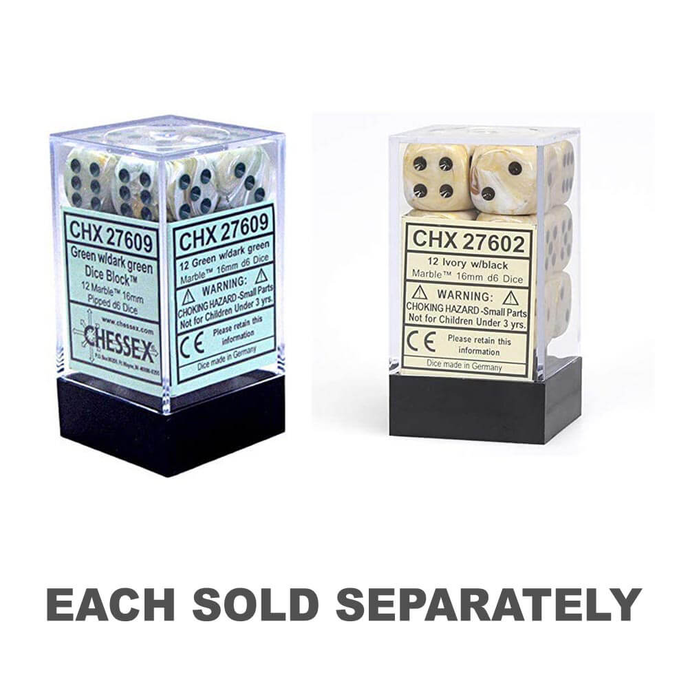 D6 dados de mármol de 16 mm (12 dados)