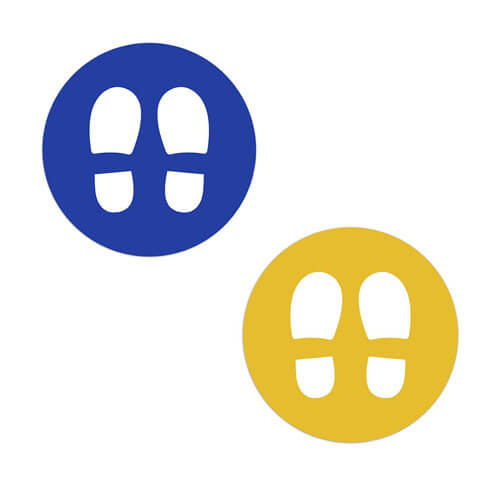 - Estas calcomanías de huellas son excelentes para recordar a los estudiantes en la escuela y a los clientes fuera de un negocio las reglas de distanciamiento social.