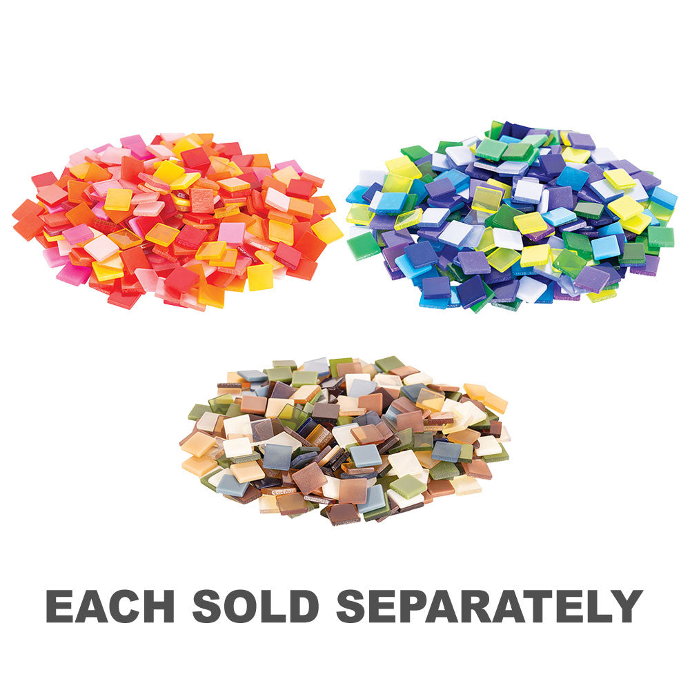 Lightweight, economical and durable, these Deco Mosaic Tiles are made from high quality resin especially formulated for use in craft, indoor decoration and art applications. This exciting decorative media can be used to mosaic papier mâché, wood, polystyrene and other craft bases (indoor applications only). Create unique keepsakes including festive baubles, hanging trinkets, ornamental frames, coasters and scrapbook covers. The ideas are endless!
