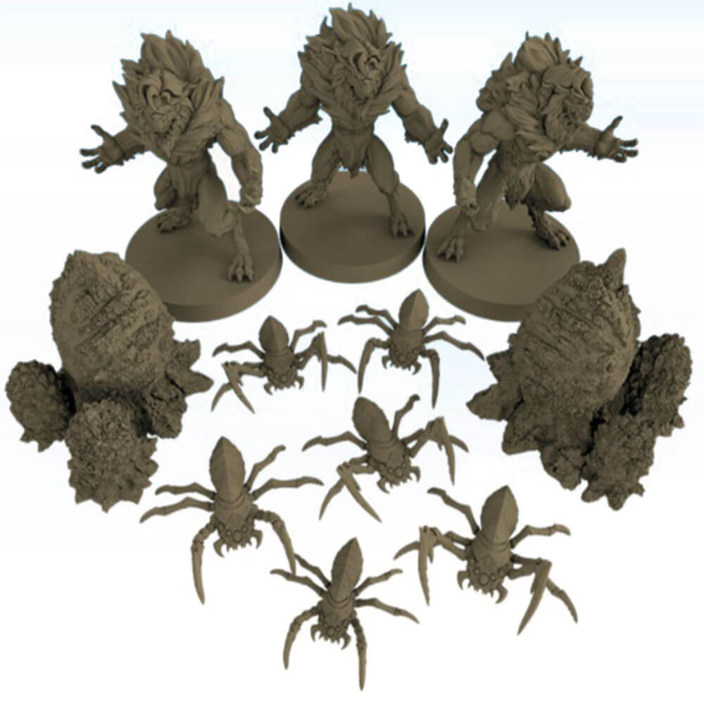 - Dans cette boîte, vous pouvez trouver trois types de miniatures de sbires différents: le venin, le nid et les gremlins de neige.