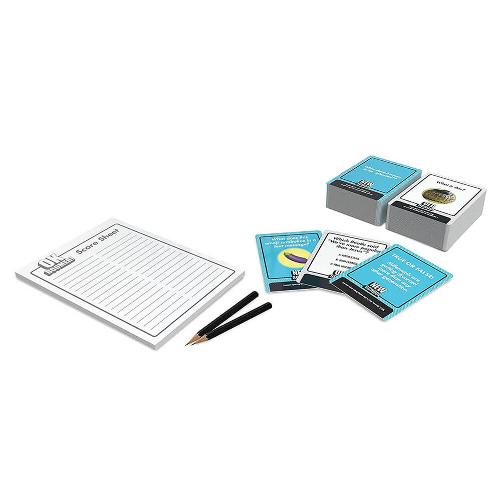 OK Boomer for Adult Games Play. Êtes-vous déconnecté ou votre jeu de trivia est-il fort? Rassemblez les générations pour ce jeu de fête amusant où vous metterez votre écart d'âge à l'épreuve! Séparer en équipes: Old School vs New School. Des mots de l'argot aux personnages de dessins animés, les nouvelles écoles de supposition de questions sur la vieille école et vice versa! Quiconque connaît davantage l'équipe sur l'autre côté se réveille vraiment!
