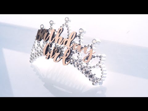 - Distintivo di tiara argento con oro rosa "" Birthday Girl "".