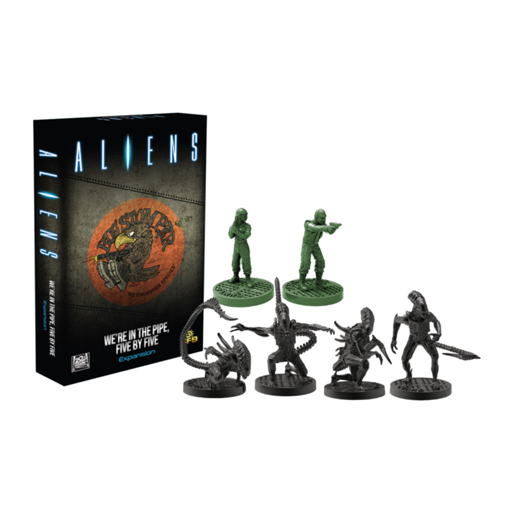 The Aliens: We're In the Pipe, Five By Five expansion brings the Sulaco's dropship crew to Aliens: Another Glorious Day In The Corps Cooperative Survival Game. ‘Fly the friendly skies' as you fight off alien stowaways while attempting to rescue the survivors of the disaster in the air processing plant.