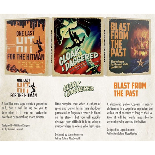 Detective: Saints and Sinners features three cases from experienced designers Alara Cameron, William Kenyon, and Logan Giannini. Vincent Dutrait returns to provide his gorgeous period-inspired artwork, but this time he is joined by Roland MacDonald and Magdalena Płoszkiewicz, both proud to make their visual mark on the City of Angels.