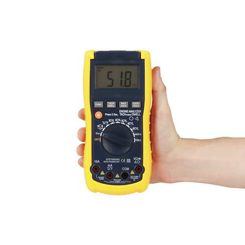 Perfetto per il workshop come analizzatore di un motore e DMM di base. Misurazione angolare di dimora completa e tachio, con mantenimento massimo / dati e luminoso LCD retroilluminato.
