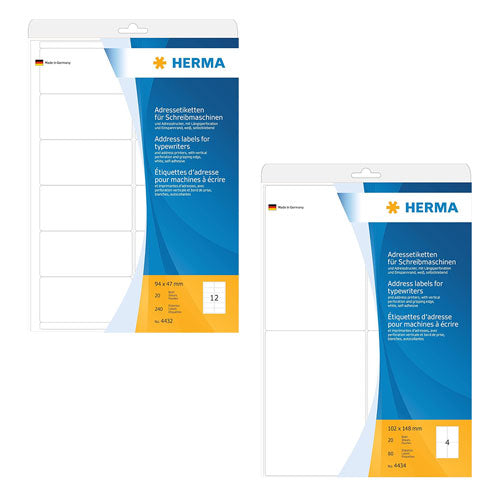 Add a touch of vintage elegance to your correspondence with Herma Permanent Adhesive Typewriter Labels! These A4-sized labels are designed specifically for typewriters, offering convenience and charm for all your labeling needs. With a permanent adhesive backing, these labels adhere securely to envelopes, packages, or files, ensuring your labels remain in place during transit. Whether for personal correspondence, decorative projects, or office use, these typewriter labels bring timeless style to your labeling endeavors. Get ready to embrace the art of typewriting with Herma Permanent Adhesive Typewriter Labels!