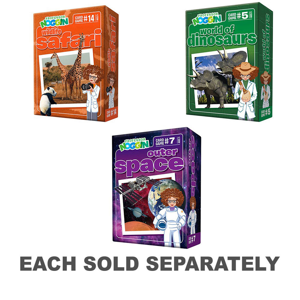 È l'edizione 2020 del professor Noggin con tutte le nuove foto! Esplora tutte le cose che accadono nello spazio. Impara informazioni affascinanti su pianeti, lune, astronavi, satelliti, asteroidi e molto altro! Ognuno di questi giochi di carte mette alla prova la conoscenza dei giocatori di vari argomenti a due livelli di abilità. Ogni gioco è composto da 30 grandi, robuste, carte, dadi a tre numeri e istruzioni. Le carte hanno illustrazioni a colori o fotografia che ritraggono un animale o un oggetto e due serie di domande a quiz sull'altro. Le domande facili sono orientate ai bambini più piccoli e alle persone con poca conoscenza dell'argomento, mentre il livello duro è per quelli con un po 'più di conoscenza. Un giocatore lancia i dadi, raccoglie una carta e fa una domanda a un altro giocatore. Se il giocatore ha la domanda giusta, lui o lei riesce a tenerla, ma se rispondono male, il lettore dice ai giocatori la risposta corretta, e torna in fondo alla pila