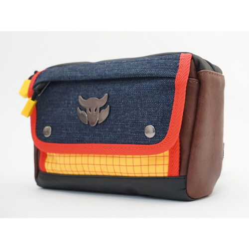 • Con elementi in pelle finta e denim con finiture in nylon e un grazioso fascino metallico sul davanti /li>