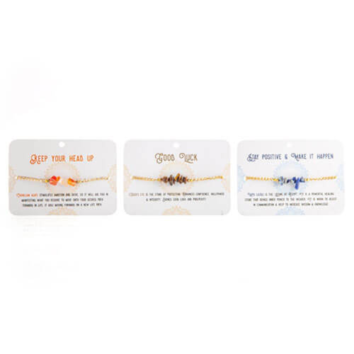 - 6種類の色と石:ターコイズ、トルマリン、クォーツ、カーネリアン、タイガーの目、ラピスラズリ。
