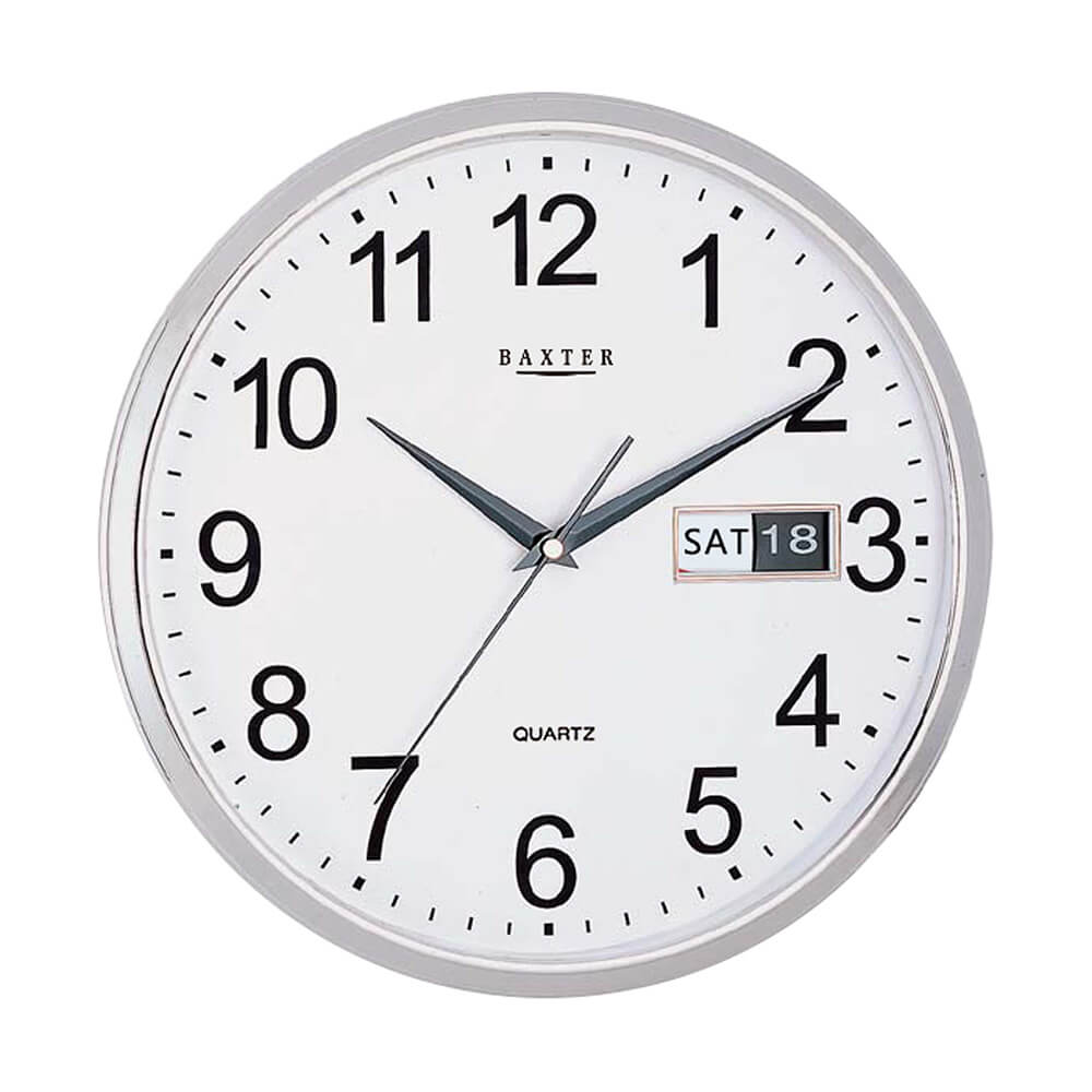バクスターウィンザーデイとデートウォールクロックシルバー32cm