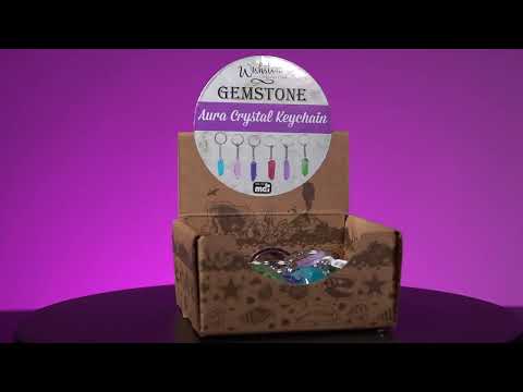 スプリットリングのカラフルなクォーツジオードキーチェーン。アイテムは6色によって異なる場合があります:マゼンタ、淡い青、紫、緑、淡いピンク、濃い青。あなたの鍵を際立たせる美しい虹色のジオーデ!