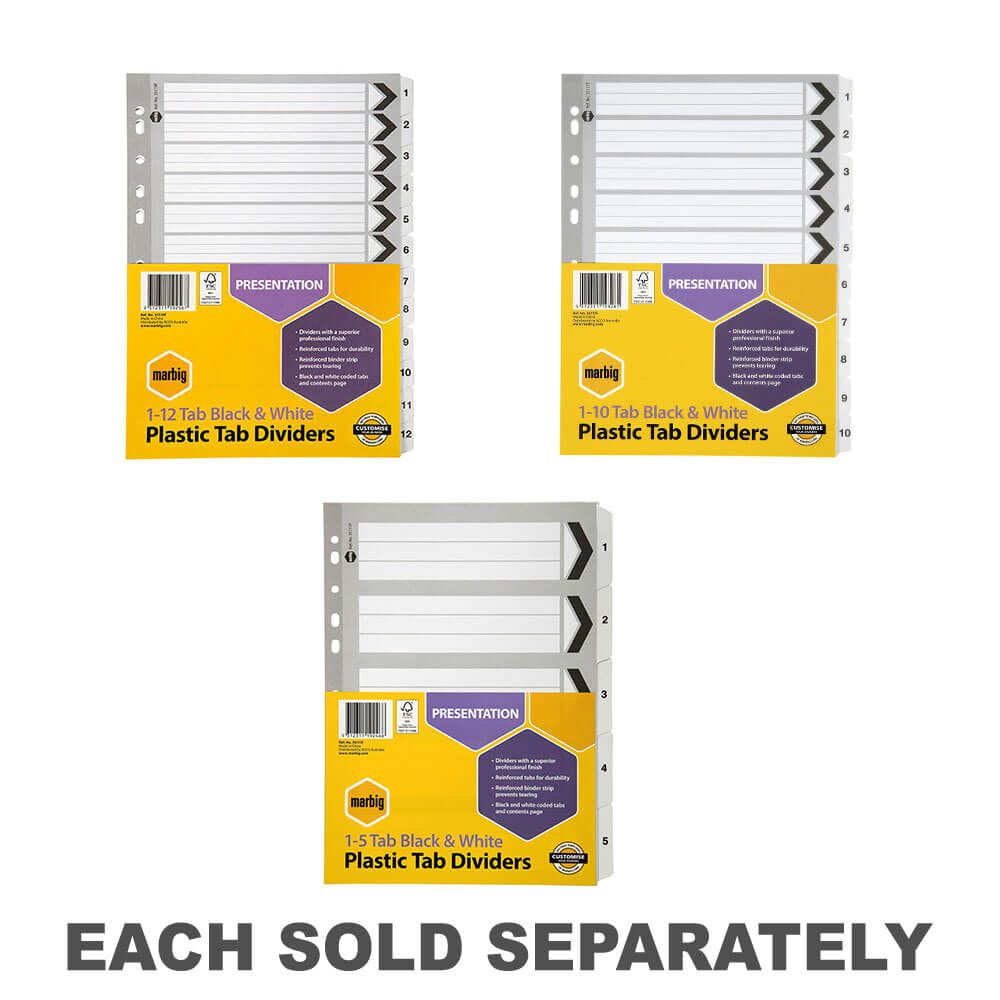 Marbigインデックスと仕切りは、すべてのバインダーおよびレバーアーチファイルで使用するのに最適です。さまざまなタブと色で利用できます。 Marbigでは、ファイリングを整理するのがさらに簡単です!