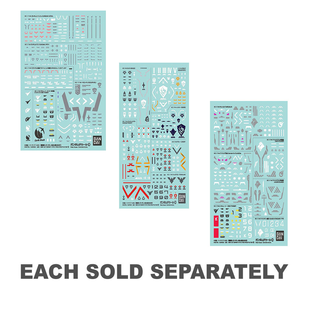 「Gundam Aerial」、「Gundam Lfrith」、および「Begilbeu」のデカールが含まれています。