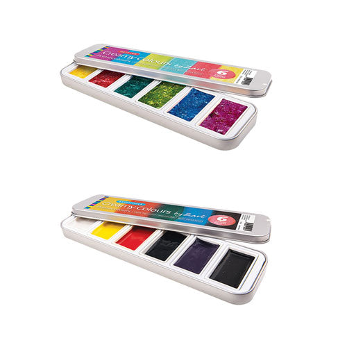 Creamy Colours Watercolours by Zart Glitter set are a fun twist on traditional watercolours with the addition of sparkly glitter particles. These watercolours add a shimmery, iridescent effect to paintings and craft projects, making works stand out and sparkle.