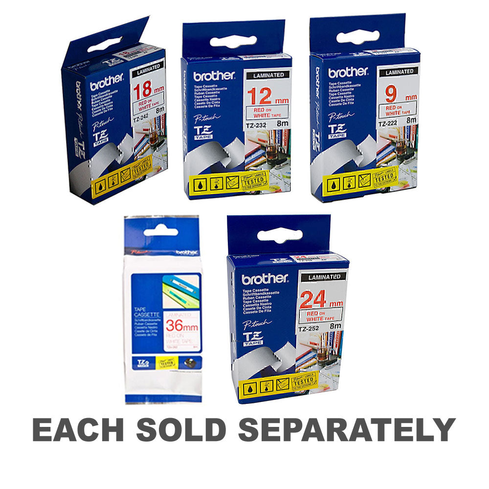 • Markeer met broer gelamineerd rood op witte etikettering tape