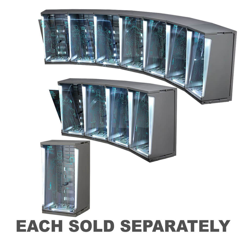 Elke hal van Amor -eenheid kan worden gecombineerd met een andere eenheid om een Hall of Armor Diorama -instelling te creëren, en zijn compatibel voor het weergeven van een van de Iron Man 1/6e schaalactiefiguren door Hot Toys.
