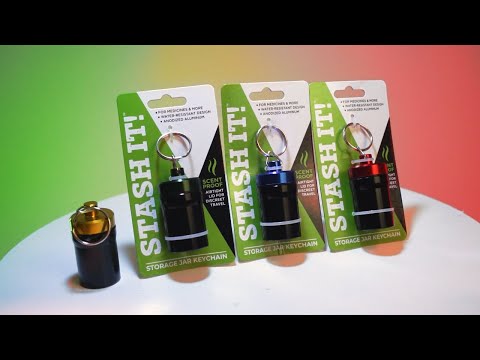 Mini -aluminium opslagpot op een handige sleutelhanger.