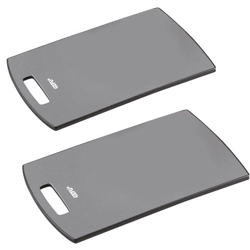 - Takket være de sklisikre silikonføttene, hviler skjærebrettet godt på arbeidsflaten. Overflaten, som er egnet for kniver, har en antimikrobiell effekt som lar deg jobbe hygienisk og rent.