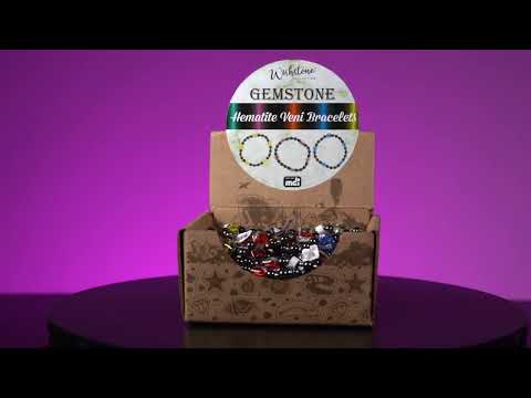 Bruk helbredende energi med dette skinnende hematittarmbåndet. Tem kan variere mellom 6 farger: rød, blå, rosa, turkis, gul, klar. Har hematittperler, sølvavstandsperler og glassperler med farget streng.