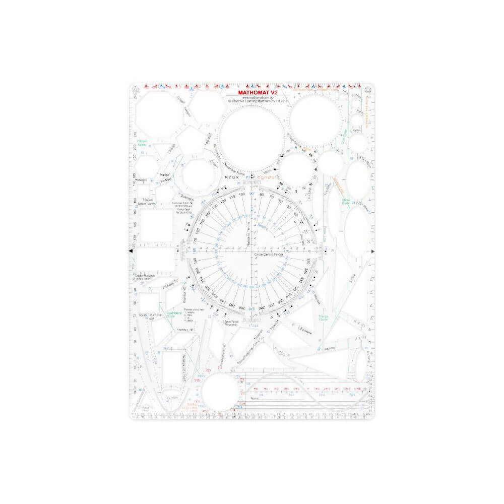 Mathomat -maler kombinerer mange verktøy til et enkelt instrument; Linjal, gradract, kompass erstatter sirkler, mange talllinjer og geometriske former sjablonger, ellipse -maler, grafveiledninger og trigonometrisk funksjonsmaskin.