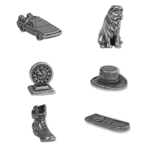 Hvis beregningene mine er riktige ... "Ved å utnytte 1,21 Gigawatts of Power, vil fluksspredningen sende deg på en historisk reise i Back to the Future Monopol. Samle de berømte stedene i Hill Valley fra alle tre filmene som Clock Tower 1885, Doc's Mansion 1955, og McFly Residence 2015. Kjøp opp favorittstedene dine, Stash Plutonium Rods og Plutonium -saker på eiendommene dine for å øke verdien, og belaste motstanderne dine for å komme seg konkurs og vinne spillet. Bonus eller straff, og pass på bilreparasjons- og klokkefondet som vil koste deg penger Rull terningen, ta tak i tokenet ditt og tidsreiser forbi GO!