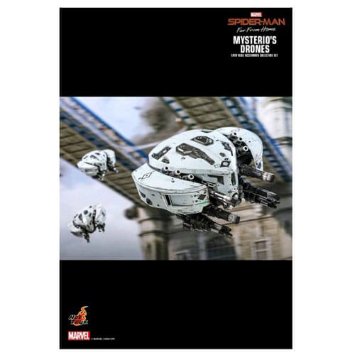 Drone Accessories -settet har omhyggelig laget med fin oppmerksomhet på detaljer, og har en Mysterio -droner på 1/6. skala, måler omtrent 14 cm i bredde, 13 cm i lengde og 7,5 cm i høyden; to miniatyrdroner, måler omtrent 5 cm i bredde, 4,5 cm i lengde og 3 cm i høyden; vakkert malt med kampskadeffekter og strekninger; Og et spesialdesignet samleobjekt for å sette opp alle dronene samtidig.