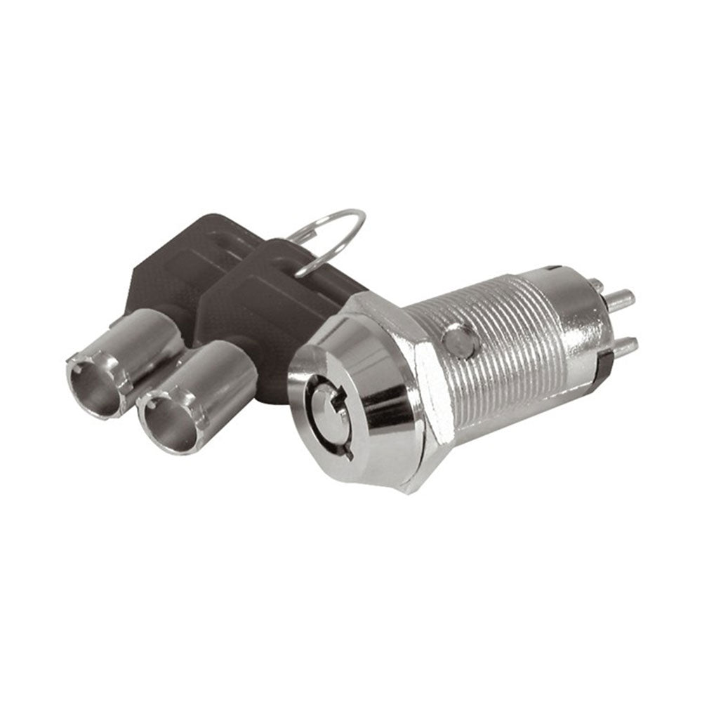 Denne nøklene bruker rørformede nøkler med svarte plastinnsatser for enkelt å identifisere dem. Den har 2 posisjoner og nøkkelen er flyttbar fra begge. Det er 4 tilkoblingsterminaler, men det er ikke en vanlig dobbeltpolel-kast (DPST) -bryter, men snarere en dobbel enkelt pol enkeltkast (SPST) overgangsbryter da hvert kontakterpar er i motsatt tilstand med den andre .