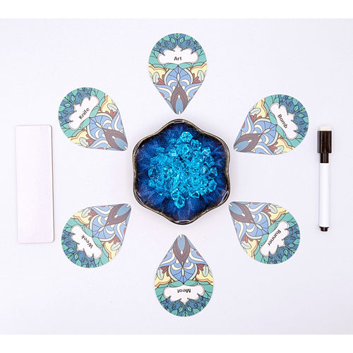 Words of a Feather is a party game with a unique focus on presentation and table presence. Players reveal words from the general supply and add their own words to the mix. All players try to write down matching words based on the clues provided. Players can bet their points if they are feeling confident about a match.