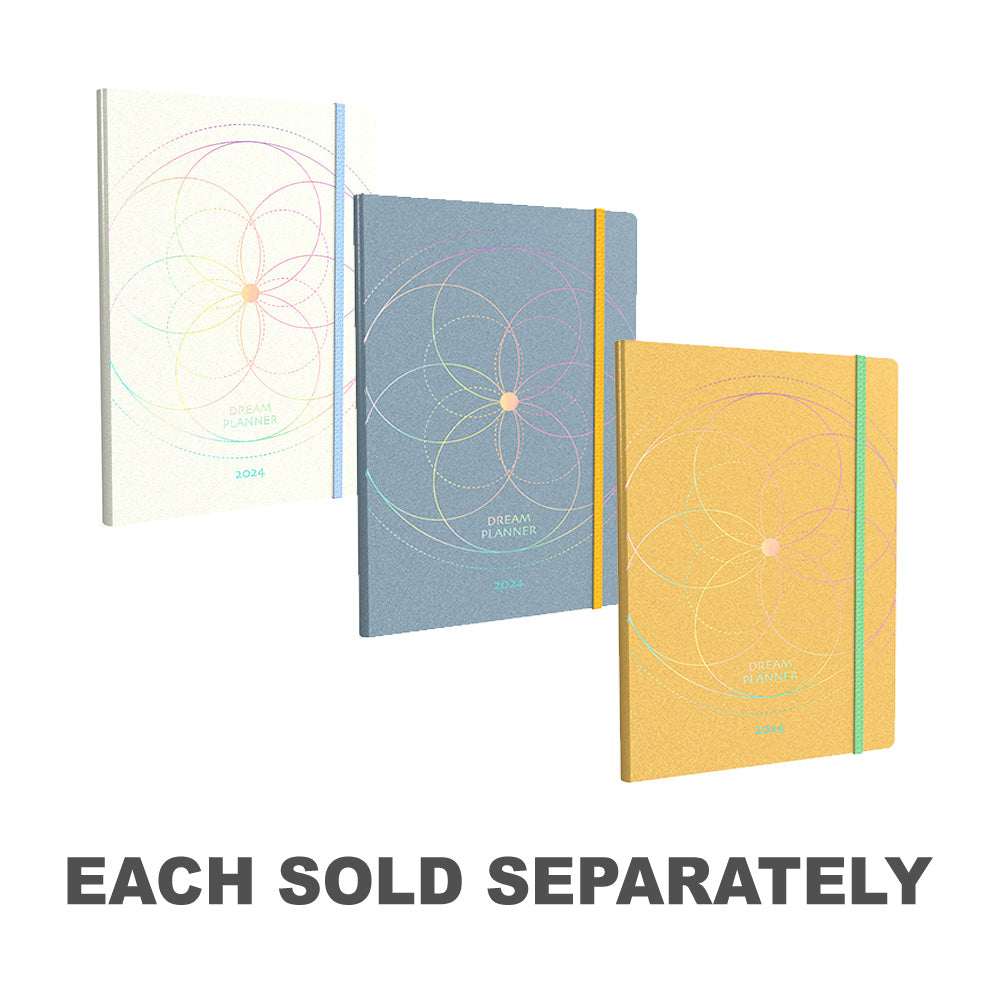 • Duże strony dla dużych snów - większy rozmiar B5 (250 x 176 mm) daje dużo miejsca na zaplanowanie codziennych zadań i innych potrzeb, takich jak listy zakupów i nawyki śledzenia. Wszystkie zamknięte w oszałamiającej twardej okładce wykonanej z papieru z recyklingu i wykończone z holograficznymi detalami.