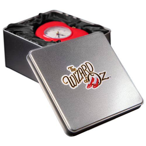 Ta premium replika jest pięknie zapakowana w blaszane pudełko z czarną satynową podszewką i logo Wizard of Oz na pokrywce.