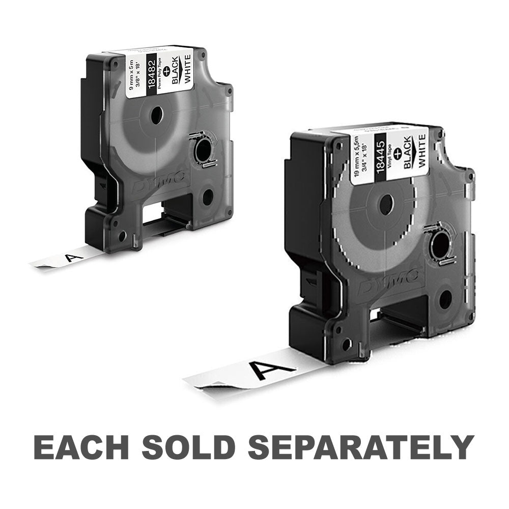 Dymo Rhino Black na białej taśmy winylowej