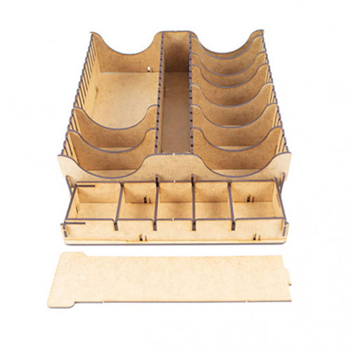 Wkładka jest trwała i wykonana z wysokiej jakości HDF. Nie wymaga kleju do montażu. Umożliwia trzymanie wszystkich komponentów wewnątrz pudełka. Na zdjęciach możesz zobaczyć sugerowane komponenty. Ta oferta obawia się tylko wstaw. Gra nie wliczona.
