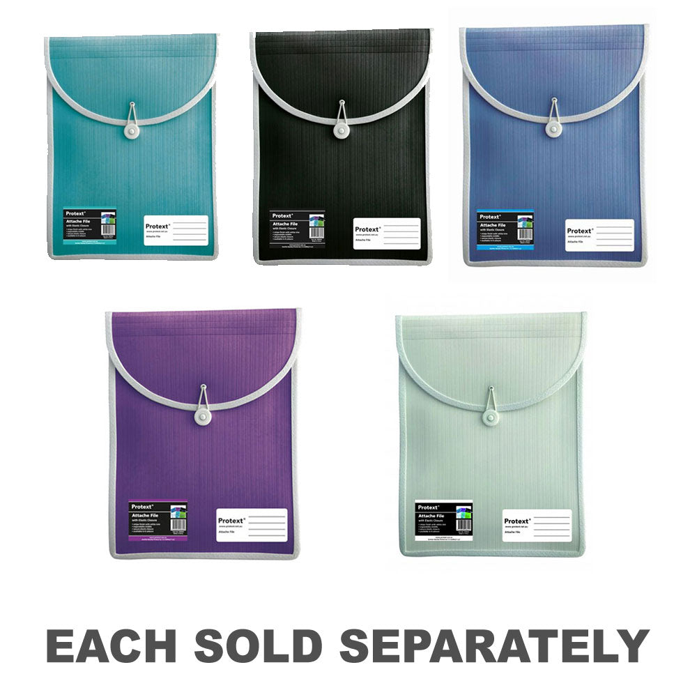 Pliki Attext Attain mają wykończenie paska ze stylowym białym wykończeniem. Rozszerzalny Gussett pasuje do ryki papieru do kopiowania. Bezpieczne zamykanie sprężystości. Wydrukowany panel z przodu do szczegółowych treści
