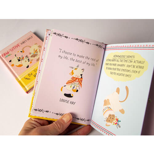 - Tylko dobre wibracje - te wspaniałe „tylko polegające na łapach wibracje - bądźcie własnymi” książką upominkową ”jest pełna 96 stron cytatów szczęścia, porad życiowych, żartów i wskazówek samopomocy, idealnej, aby zapewnić ci populę każdego dnia!