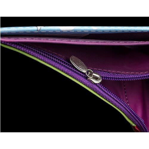 - Wallet features 4 card slots, a windowed photo slot, a note pocket and a zippered coin pocket!