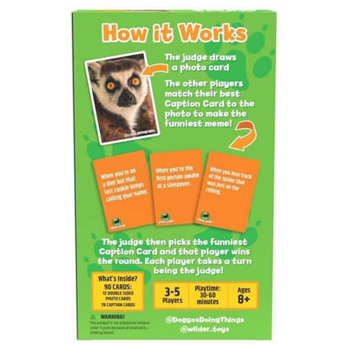 • Comes with hilarious double-sided photo cards and the funniest caption card. Pair the cards together to make memes that the will make the judge laugh.