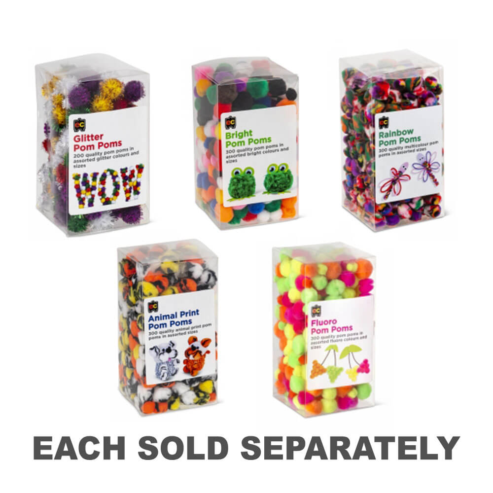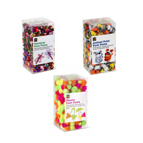 Pom Poms are fun for lots of crafty things, making Christmas stockings or just playing with them. These sparkly and fluffy Pom Poms will add a 3D effect to any craft activity. Assorted glitter colours and sizes in a box of 200.