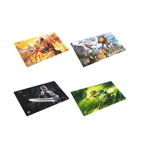 Available in four full color printed designs, the Game Mat brings the exciting atmosphere of the Star Wars™ franchise to the gaming table. This softly cushioned playmat is 2mm thick and protects playing cards from rough or dirty surfaces. Each mat has an ultrafine surface and an anti-slip back side. The fascinating design, the comfortable feel, and soft material are ideal for an upgraded gaming experience.