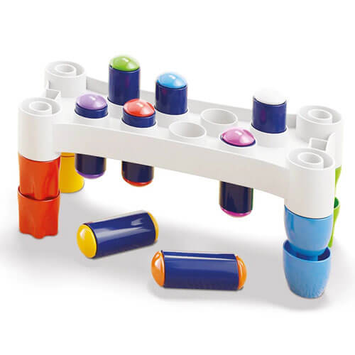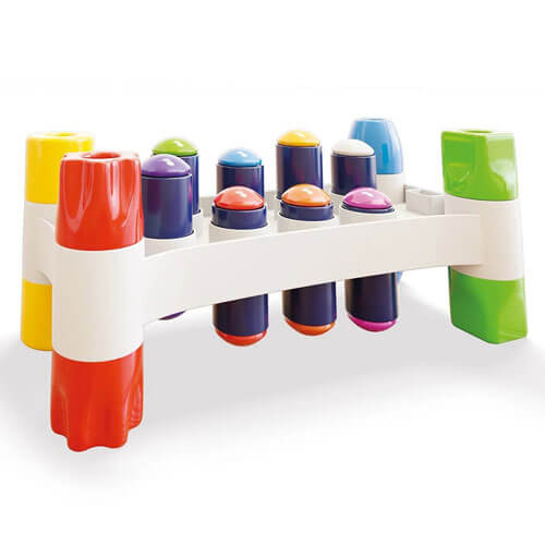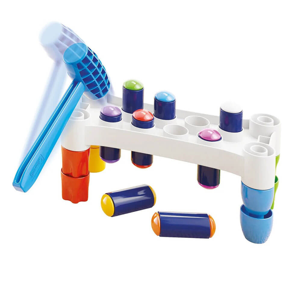 - Have fun hitting the colourful pegs with the hammer and when you have finished turn the game upside down and start again.