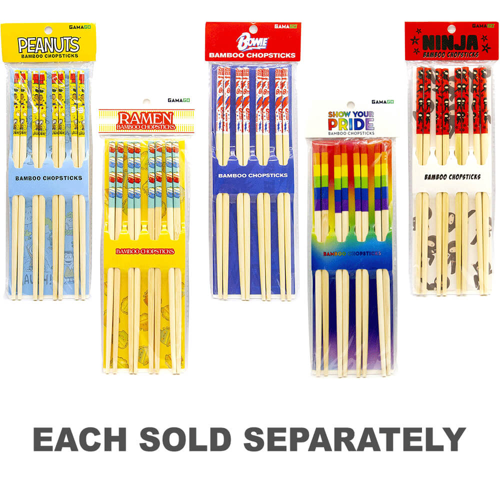 Os pauzinhos de bambu ninja desfrutam do seu prato de macarrão favorito com esses pauzinhos adoráveis de Gama-Go! Feito de bambu 100% natural, esses pauzinhos são reutilizáveis e apresentam uma superfície suave para facilitar a aderência e perfeitas para iniciantes. Eles têm 23 cm de comprimento e apresentam um design ninja fofo para fãs dos especialistas em artes marciais! Com 5 pares incluídos, há muito o que percorrer na sua próxima festa de estilo asiático. Perfeito para sushi, sopa de macarrão ramen, udon, tigelas de arroz, shabu-shabu, pho, churrasco coreano e muito mais, impressione seus amigos e familiares e pegue um pacote hoje!