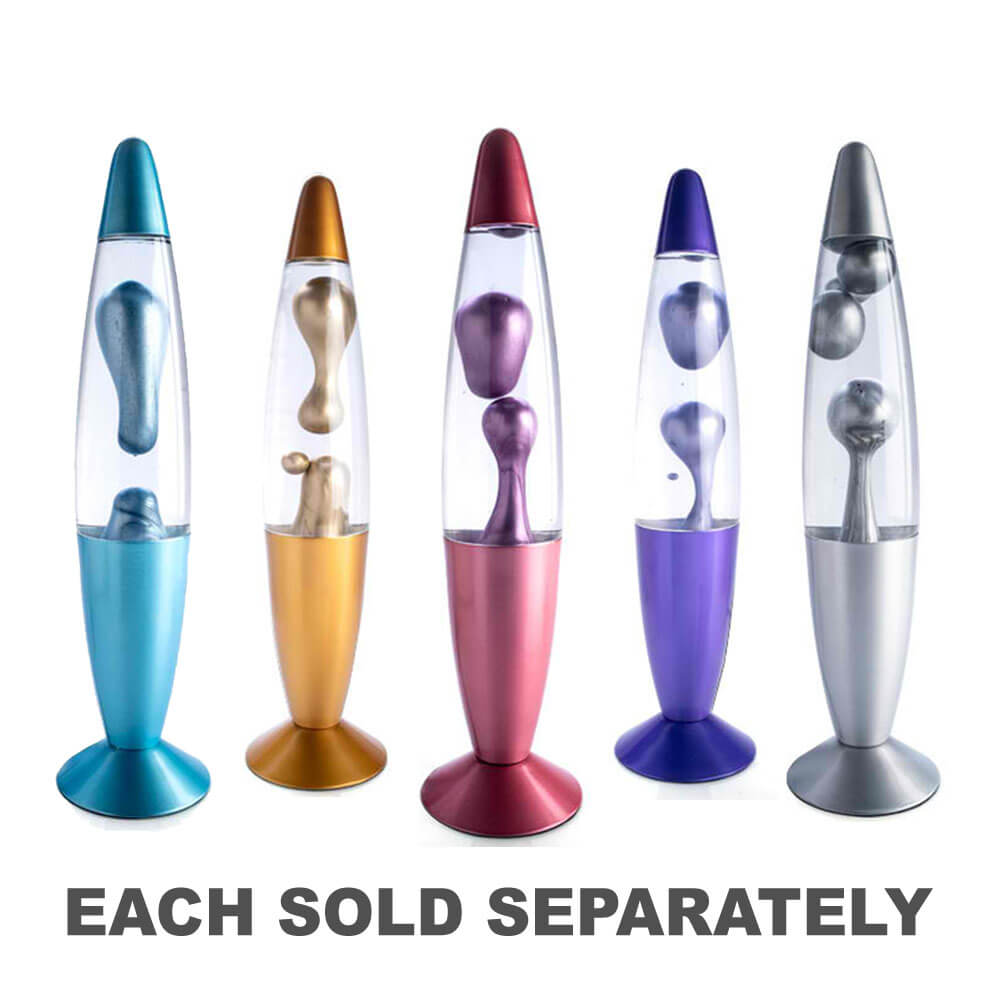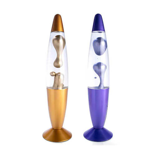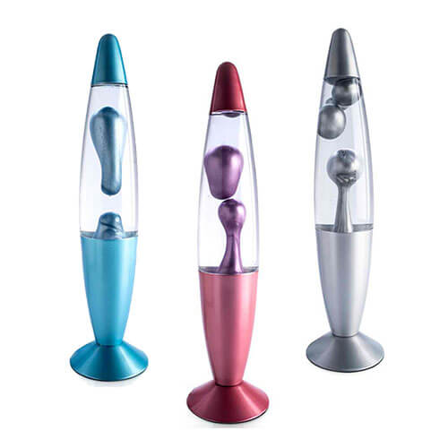 - Apresenta lava metálica azul impressionante que ondula e flutua quando acesas