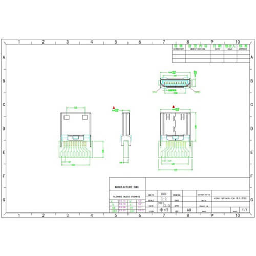 Plugue Mini HDMI de Gold Gold de qualidade para montagem de PCB.